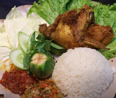 Ayam Goreng dengan bumbu kuning ciri khas Sunda, lezat dan nikmat. Ayam daging lembut dengan ukuran yang besar.