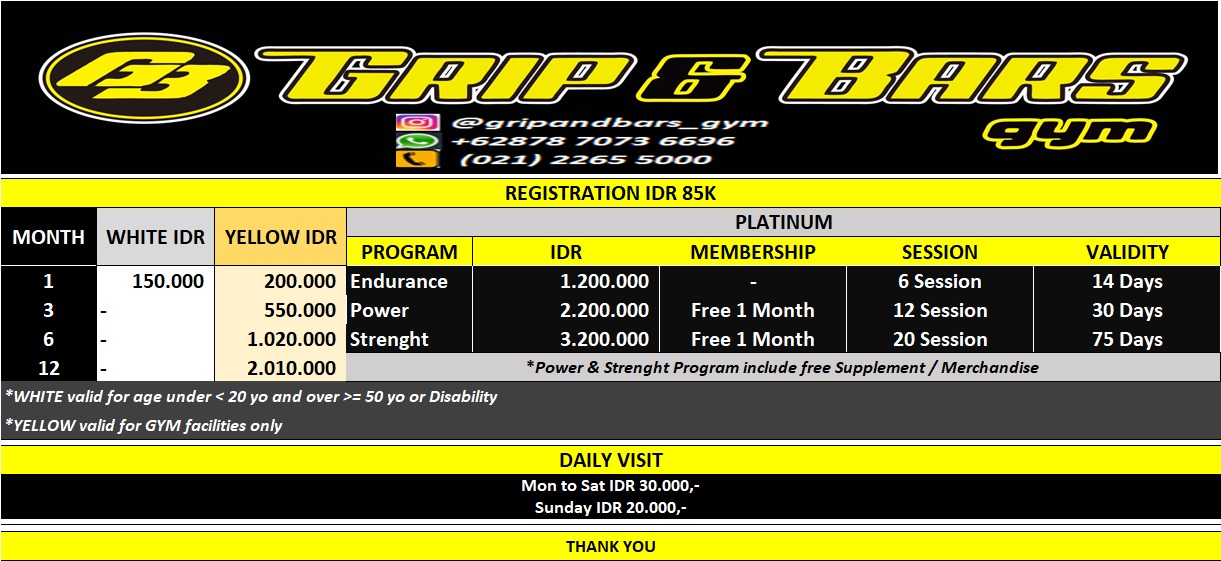 Berlaku untuk semua akses (fasilitas gym dan kelas)